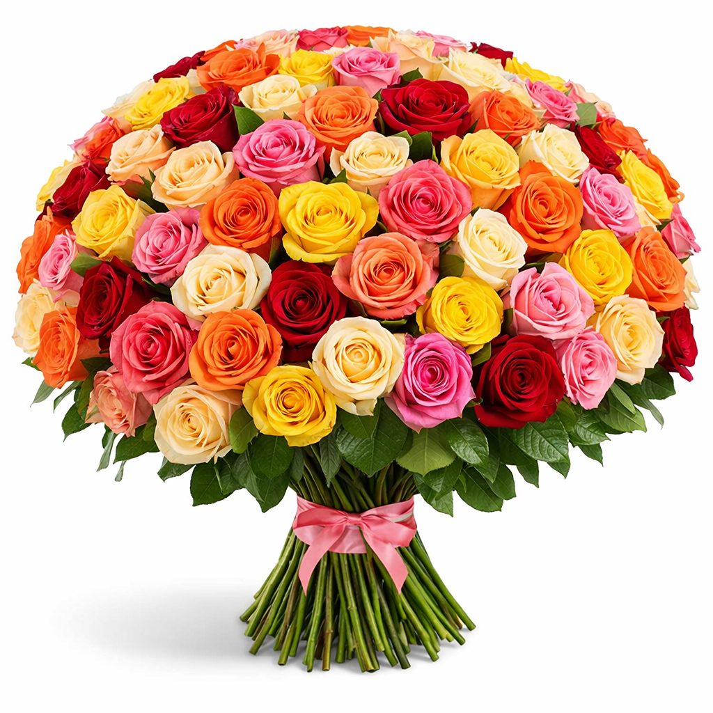 Роза Россия микс (кремовая, желтая, оранжевая, красная, розовая).